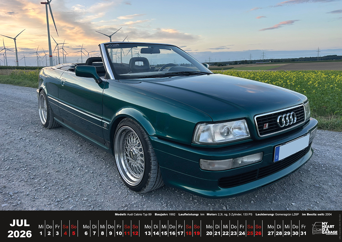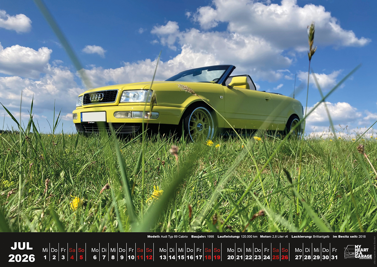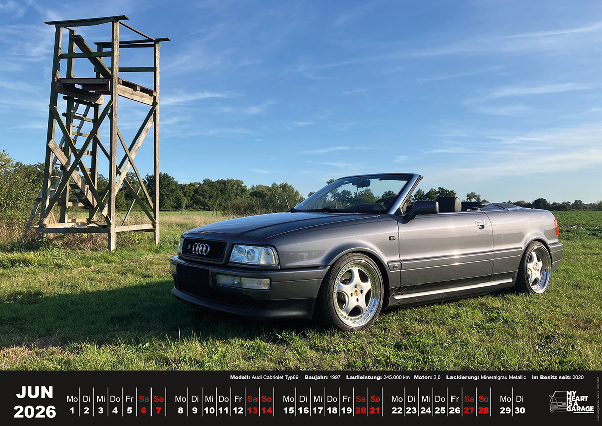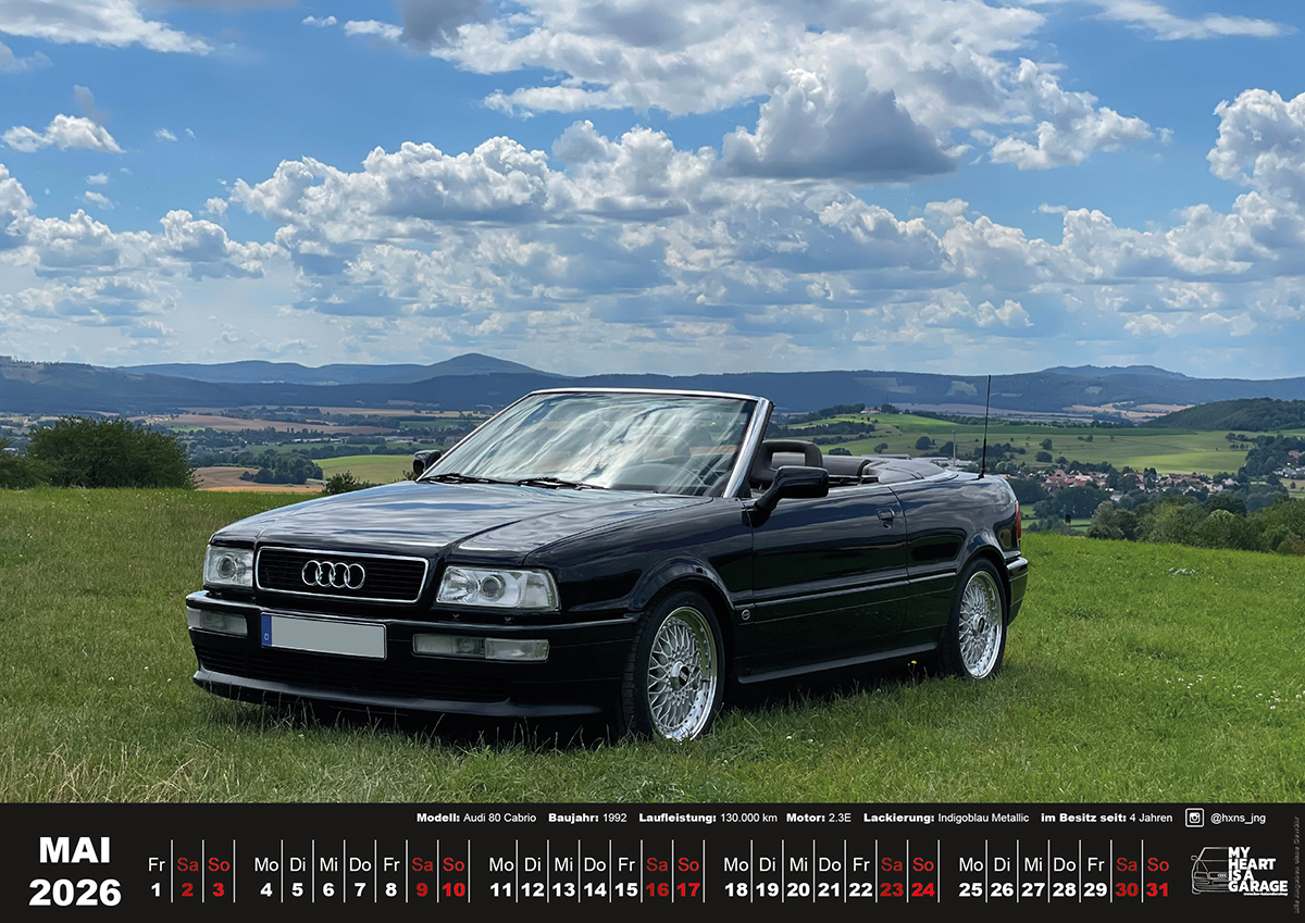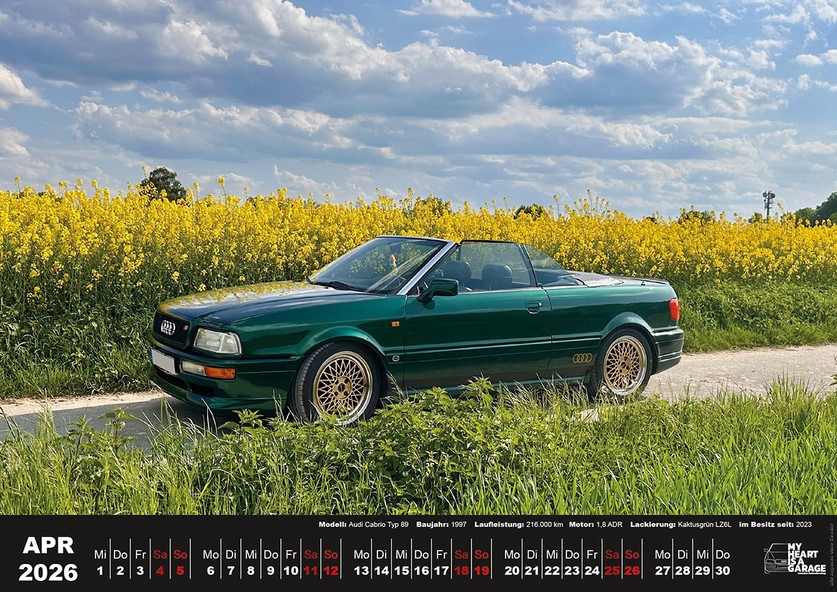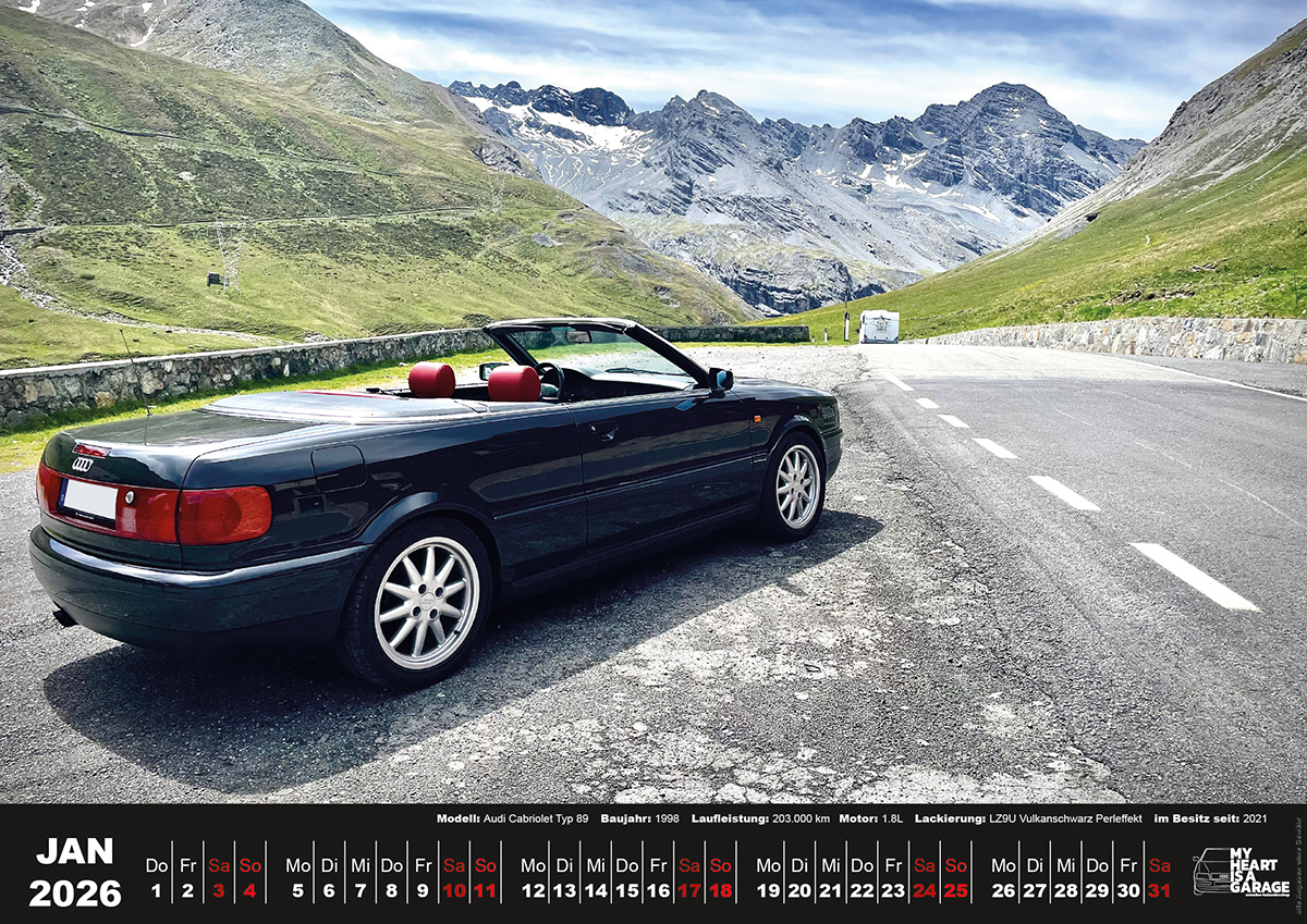 der Tisch-Fan-Kalender 2026 mit Audi Cabrio Motiven im Format A5 (21×15 cm)