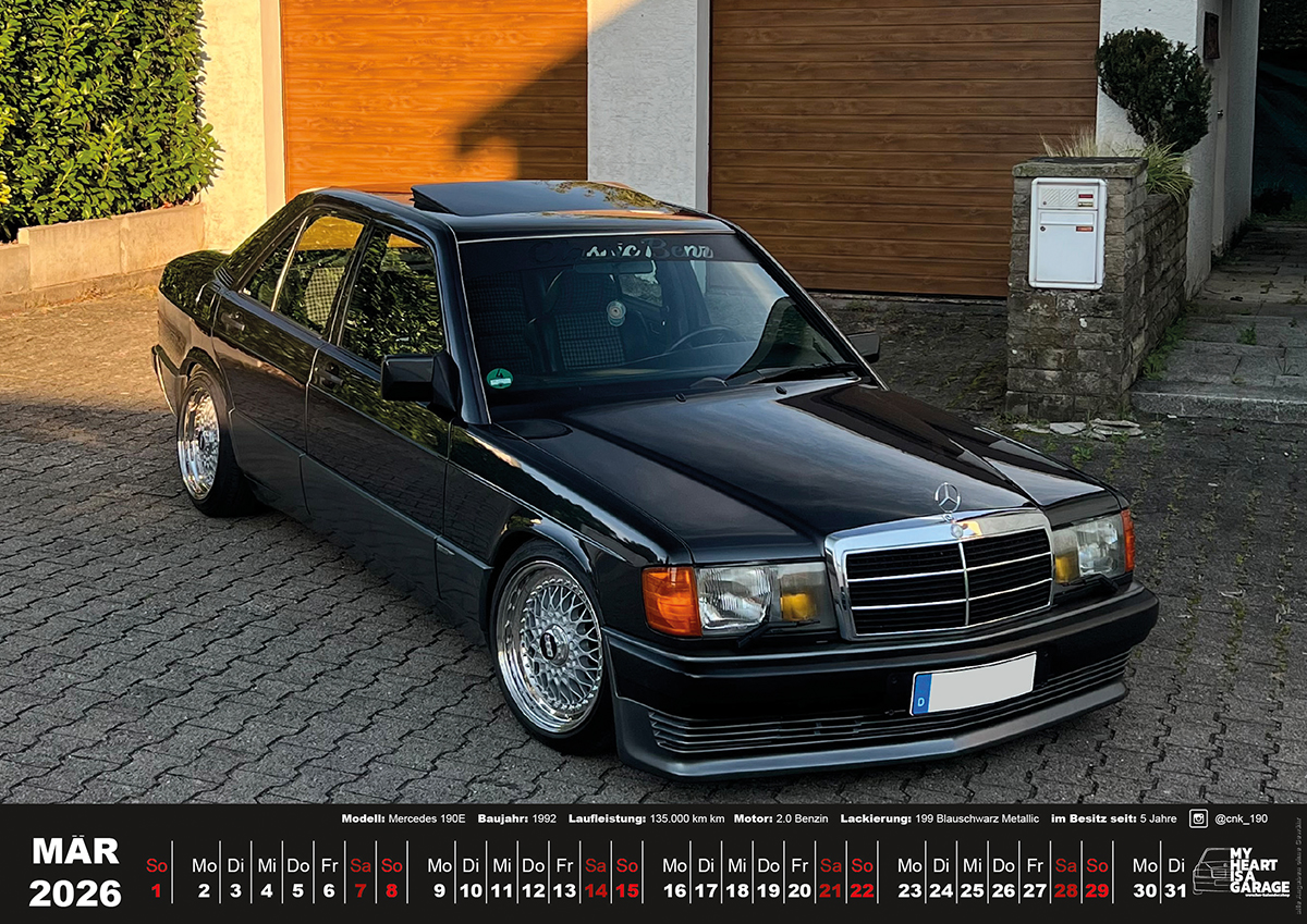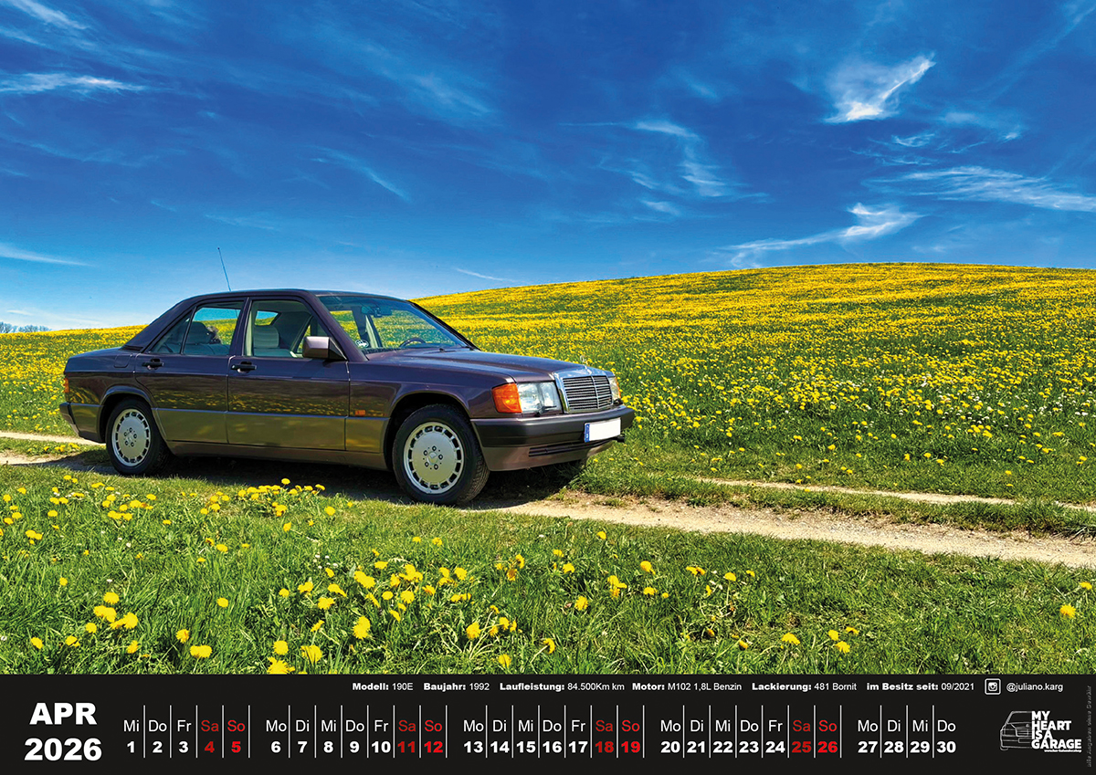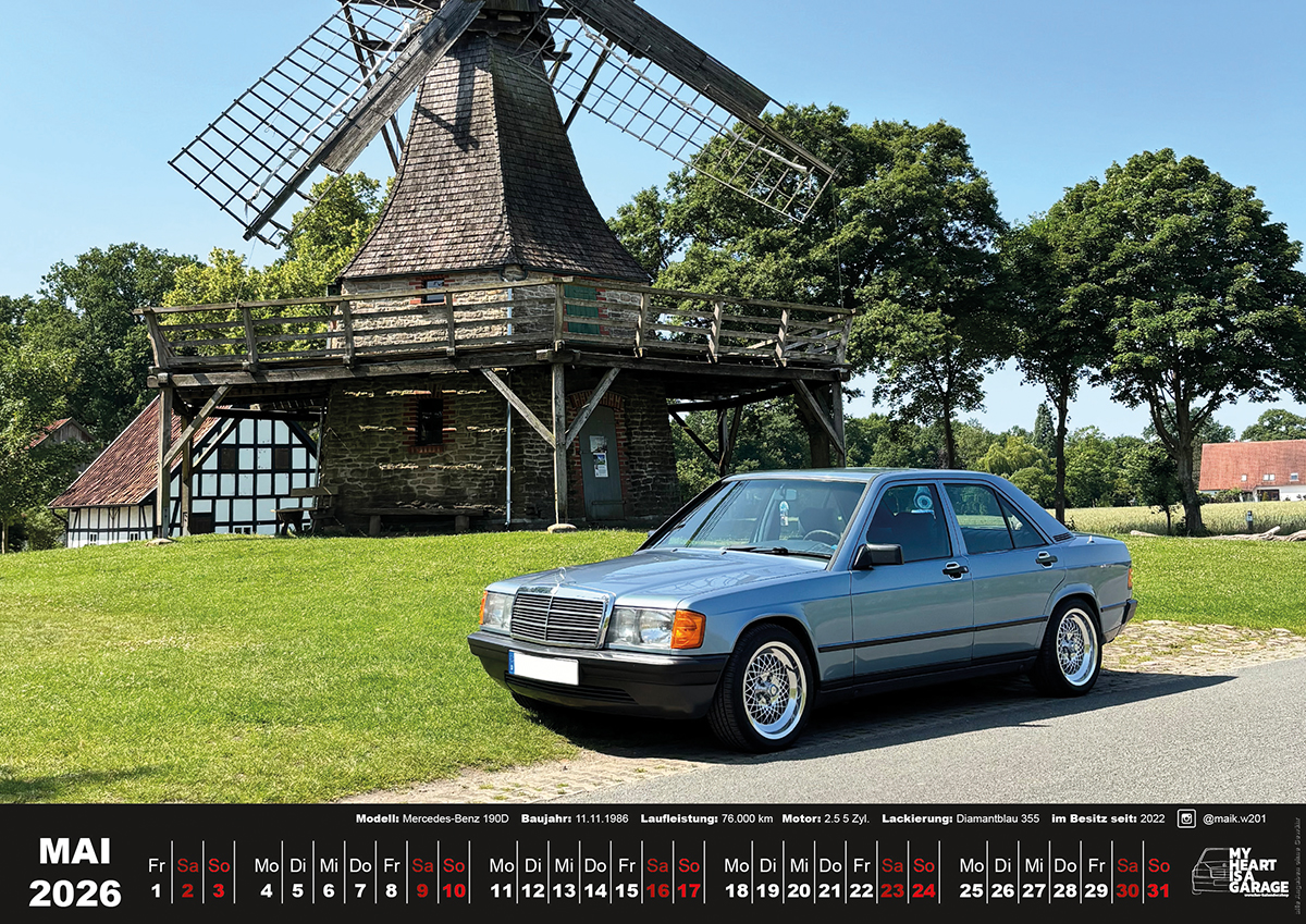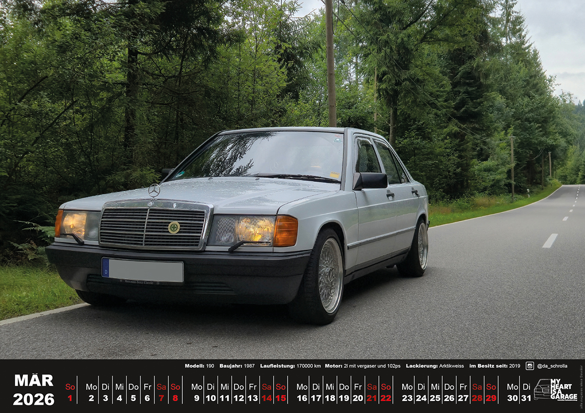 Tischkalender Fan-Kalender 2026 – Modell: Mercedes 190