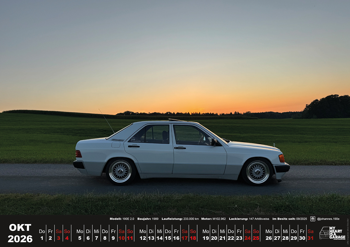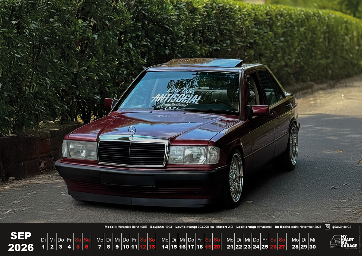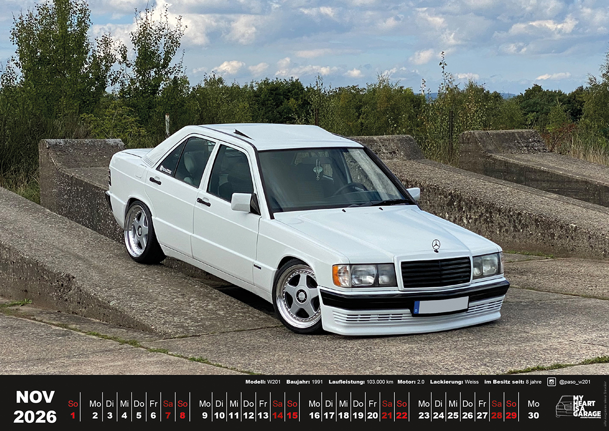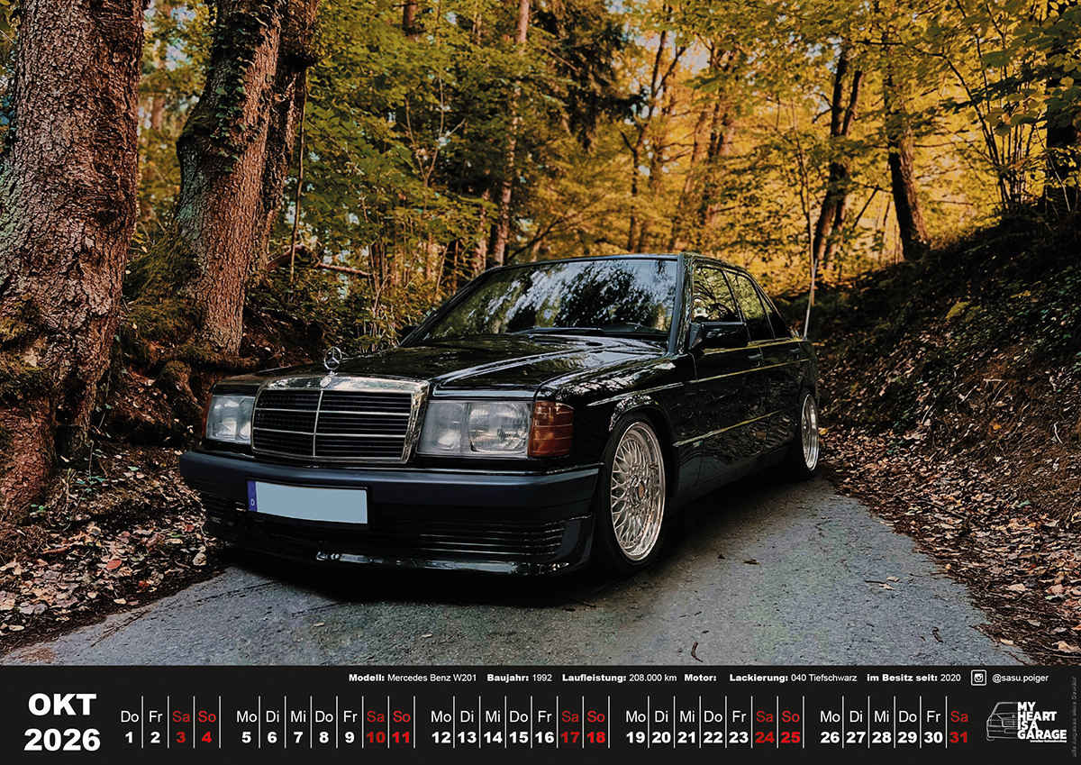 Tischkalender Fan-Kalender 2026 – Modell: Mercedes 190