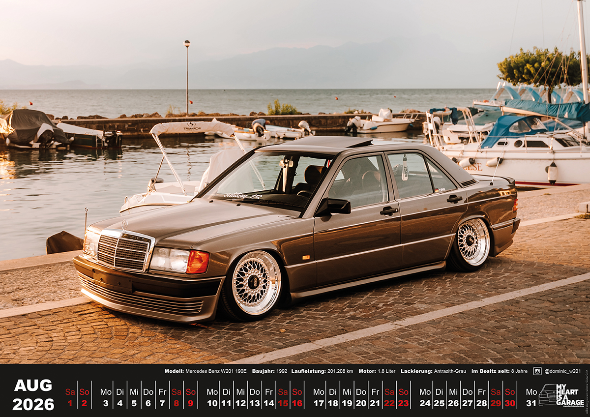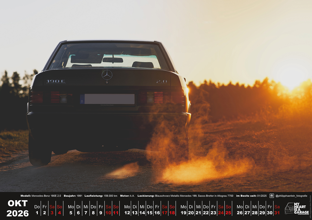 der Fan-Kalender 2026 mit Mercedes 190 Motiven im XXL-Format DinA2 (60×42 cm)